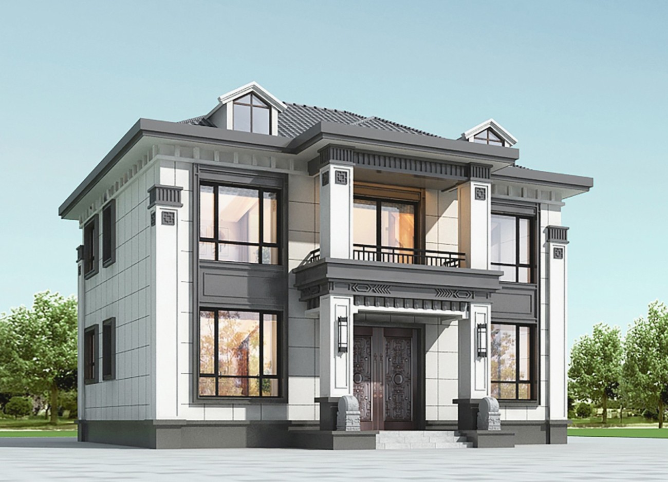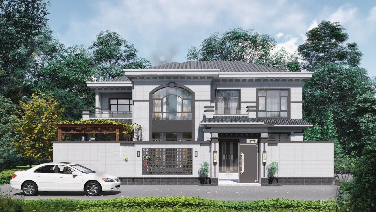 陵水011 两层新中式(15.43x12.66米)-【易设计】